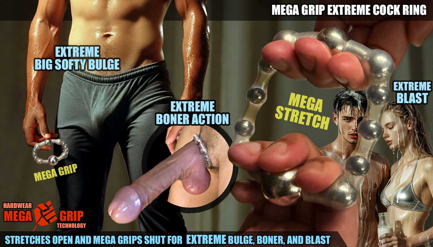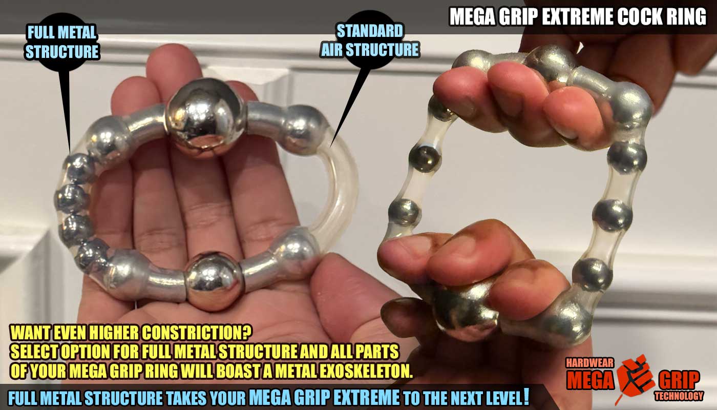 In the world of penis enhancement, there are different ways to deliver supercharging pressure to the male organ. The Mega Grip Extreme utilizes extreme dynamic constriction, the most powerful of all approaches. In other words, a continuous inward enhancing pressure is produced, so that even if your erection isn't growing to fill the ring, the ring will be contracting on its own to activate a powerful penis clamp and the best erection of your life.